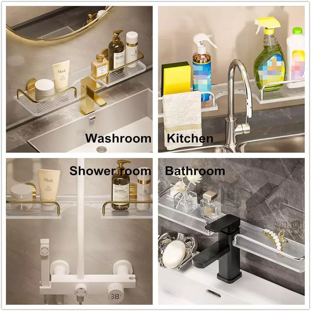 Розмір полиці становить 40×10см, що забезпечує достатньо місця для зберігання предметів першої необхідності. Установка можлива двома способами: за допомогою клею для гладких поверхонь або свердління для нерівних стін. Полиці підходять для кранів із зазором понад 3 см між стіною і змішувачем, що дає змогу максимально ефективно використовувати простір.