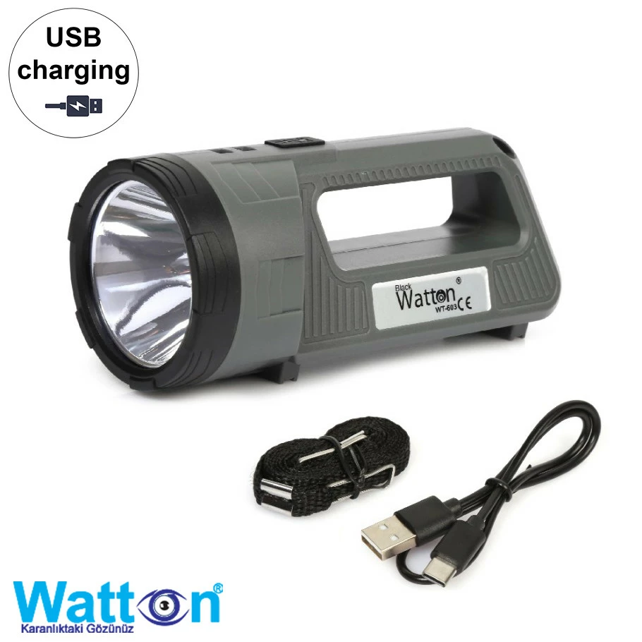 Акумуляторний світлодіодний ліхтар-прожектор WATTON WT-603 ліхтарик з USB кабелем та функцією PowerBank
