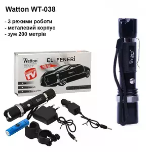 Ліхтарик Watton WT-038 ідеально підходить для походу, кемпінгу, їзди на велосипеді, альпінізму, полювання та активного відпочинку, або коли відключається електрика. Висвітлює відстань приблизно 200 метрів. Має функцію фокусування променя.