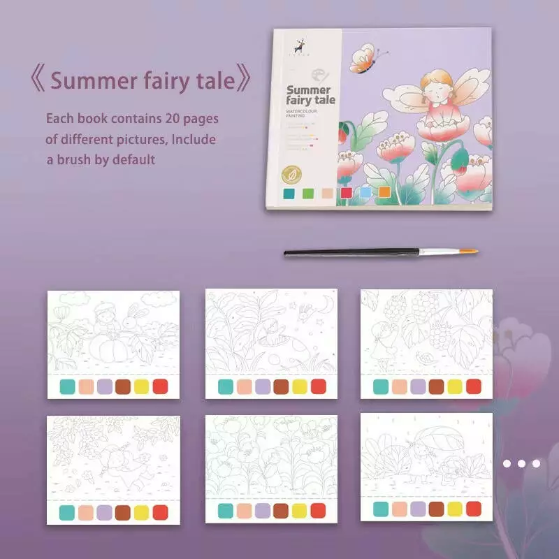 Альбом для розфарбовування з акварельними фарбами розмальовка "Summer fairy tale" для творчості та живопису