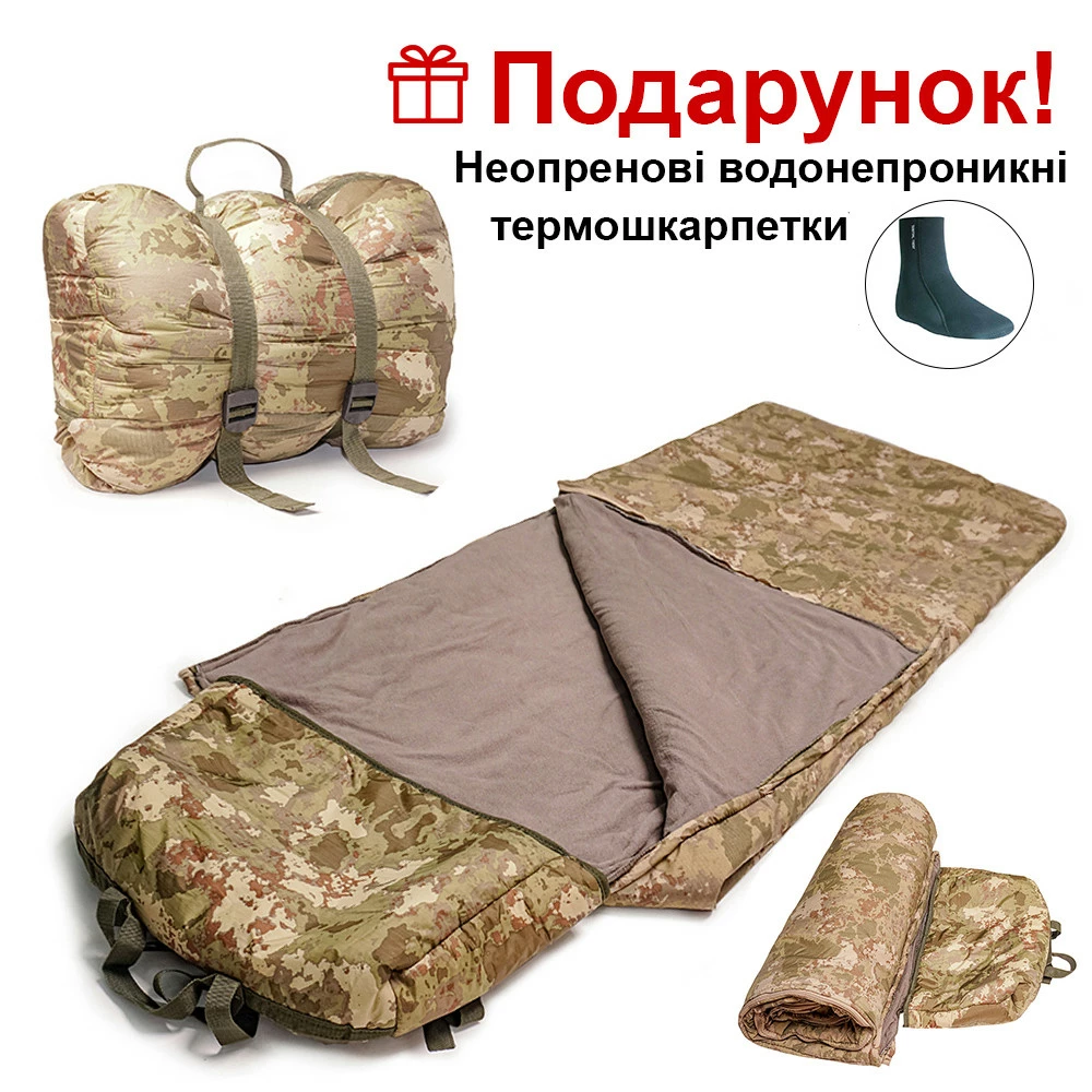 Армійський зимовий тактичний спальний мішок-ковдра, спальник для ЗСУ 210*75 до - 25 В подарунок неопренові шкарпетки!