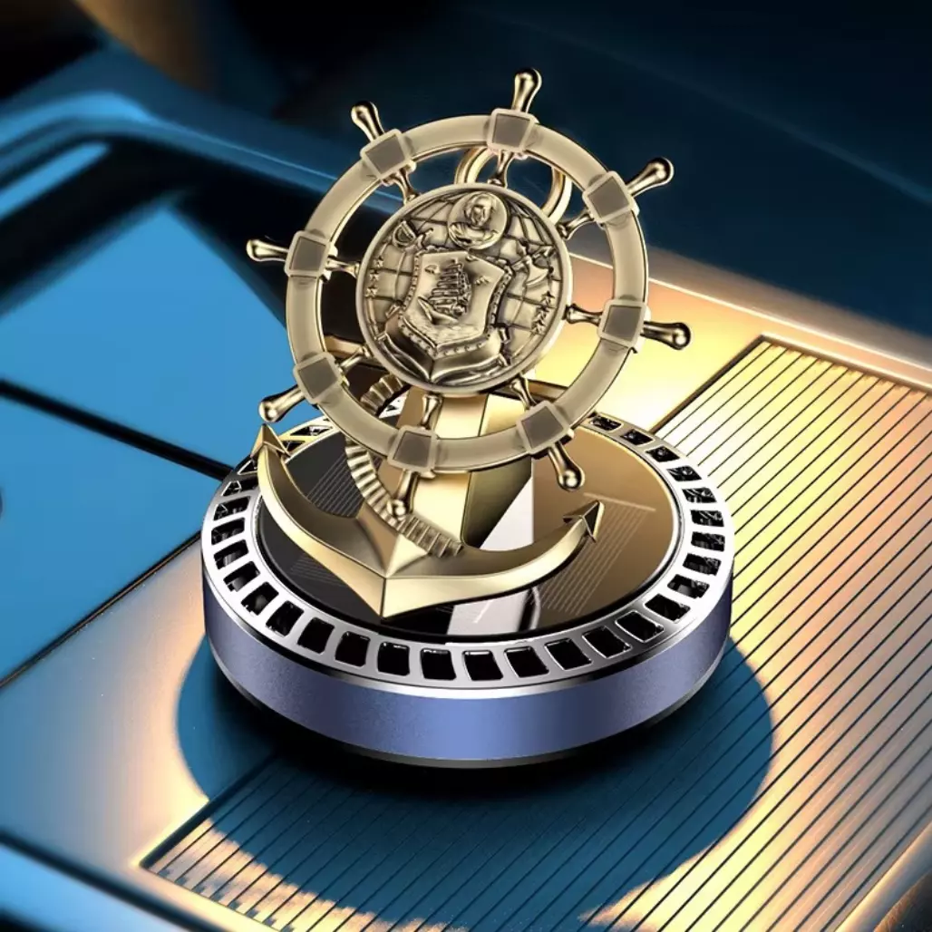 Стильний і функціональний ароматизатор для автомобіля у вигляді корабельного штурвала – це не лише джерело свіжого аромату, а й ефектний аксесуар для салону. Пристрій працює від сонячної батареї, завдяки чому штурвал обертається, рівномірно розподіляючи аромат по всьому автомобілю. Алюмінієвий корпус та вишуканий дизайн роблять його не лише практичним, а й естетичним елементом інтер’єру.