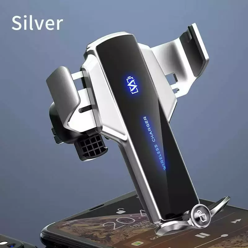 Автотримач для телефона з вбудованим акумулятором і бездротовою зарядкою 15W P9, Type-C, сріблястий