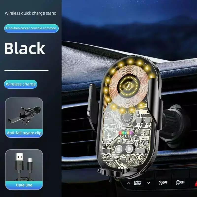 Автотримач для телефона з вбудованим акумулятором і бездротовою зарядкою 15W C13, Type-C, чорний