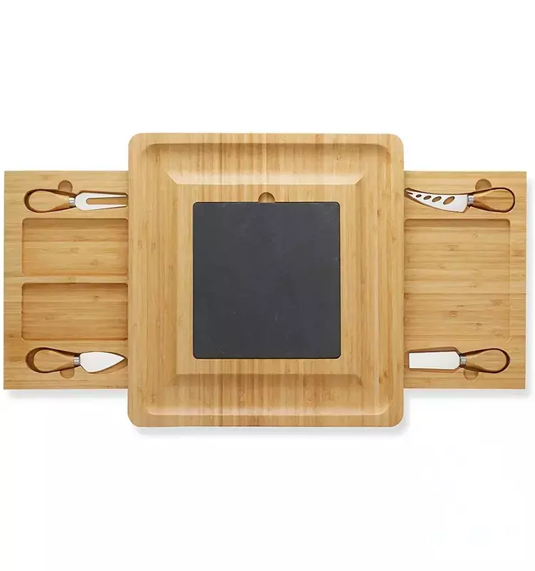 Дошка бамбукова для сиру і закусок, дерев'яна, сервірувальна менажниця з поверхнею для нарізки 33×33 см