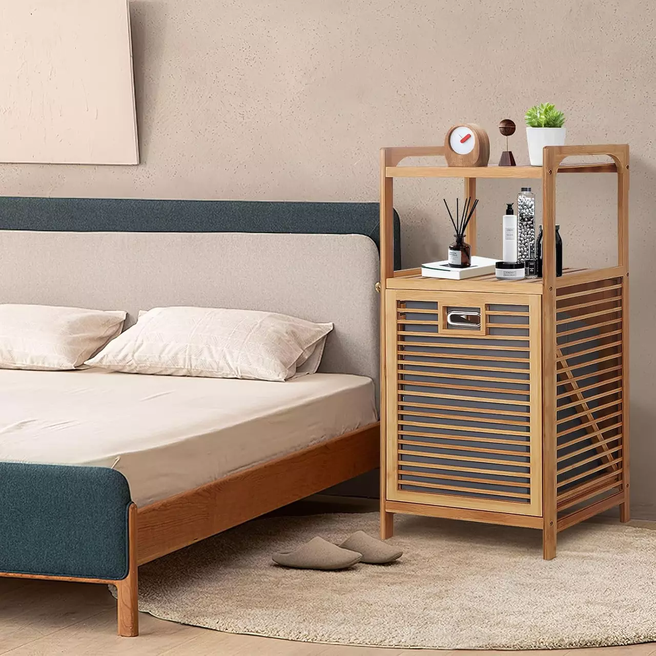 Бамбуковий стелаж з відкидною кришкою, 2 висувні кошики для білизни + відкрита полиця, 95x40x30см
