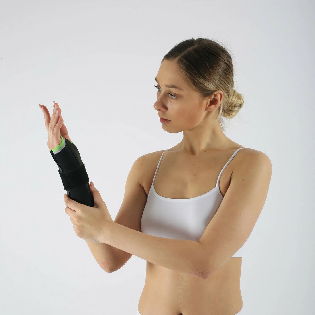 Виготовлений з легкої бавовняної тканини, яка дозволяє дихати та створює відчуття комфорту. Містить 19-сантиметрову алюмінієву пластину, яка обмежує рух зап'ястя та забезпечує стабільність.