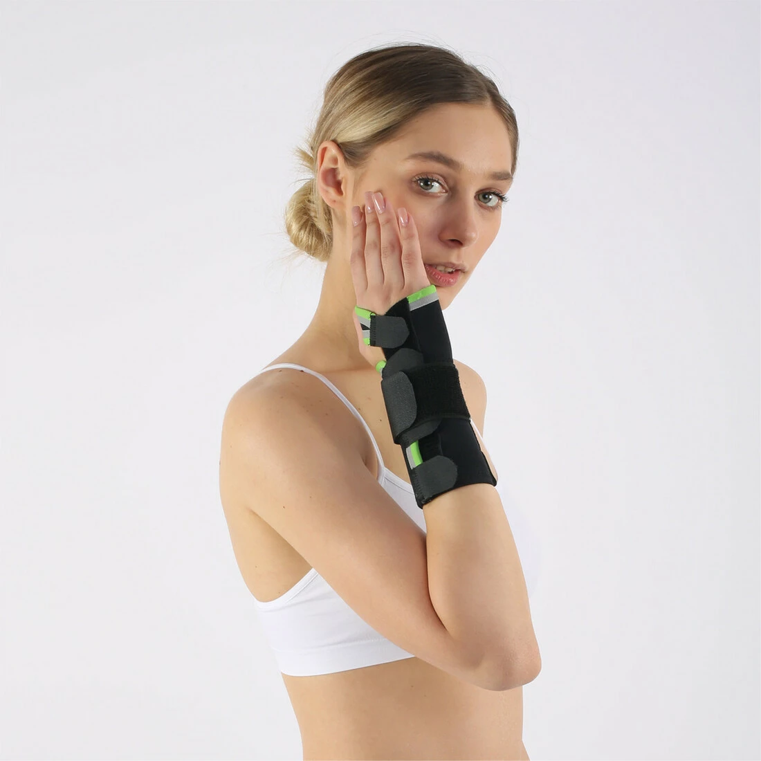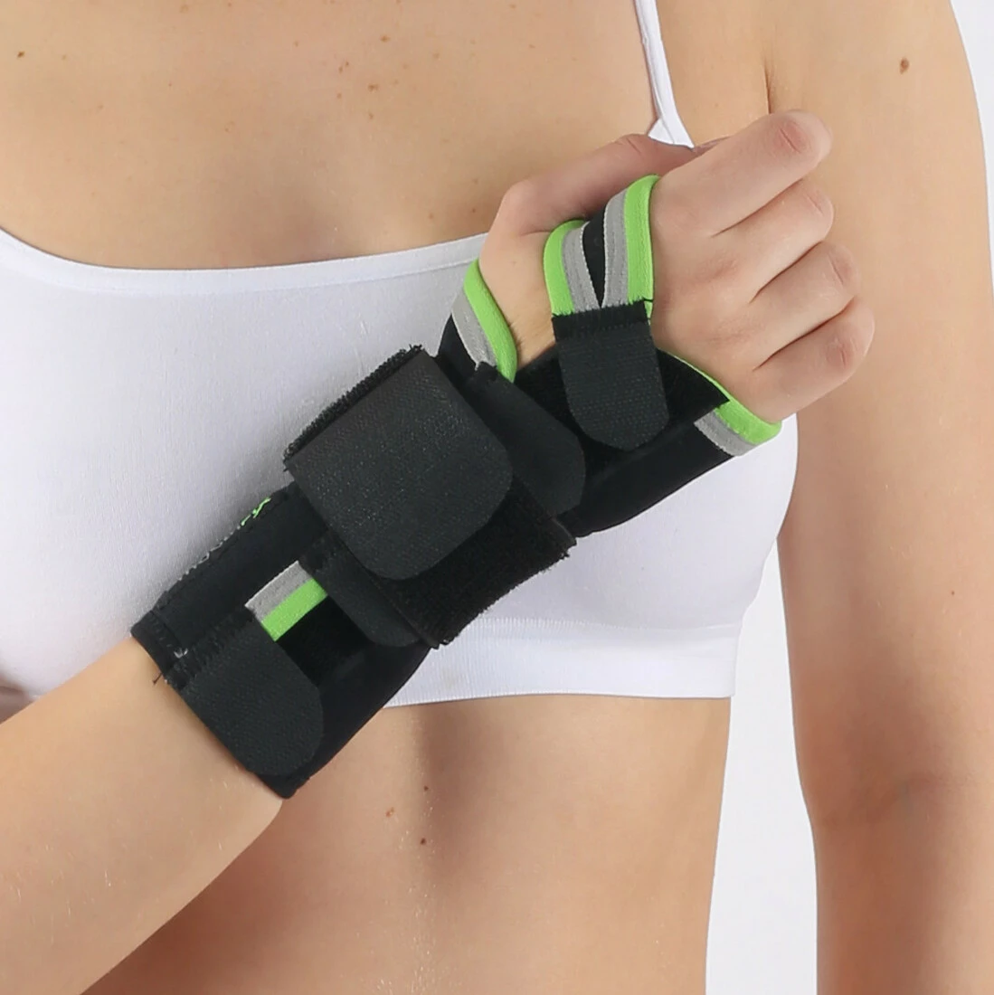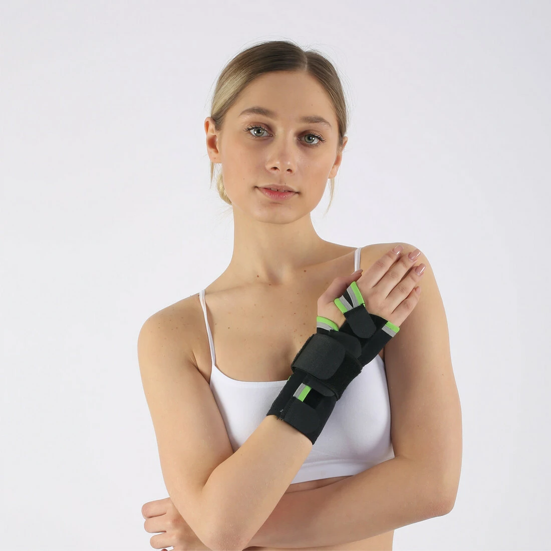 Бандаж на зап'ястя HS19 з алюмінієвою шиною анатомічного профілю дозволяє стабілізувати руку в природному положенні, що сприяє одужанню пацієнта, забезпечуючи комфорт під час повсякденної роботи.