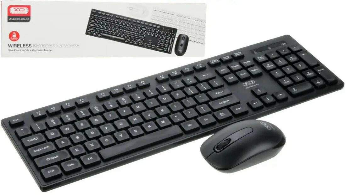 Компактний комплект клавіатури з мишею XO KB-02 поєднує зручність бездротової технології з надійністю на рівні проводового з'єднання.