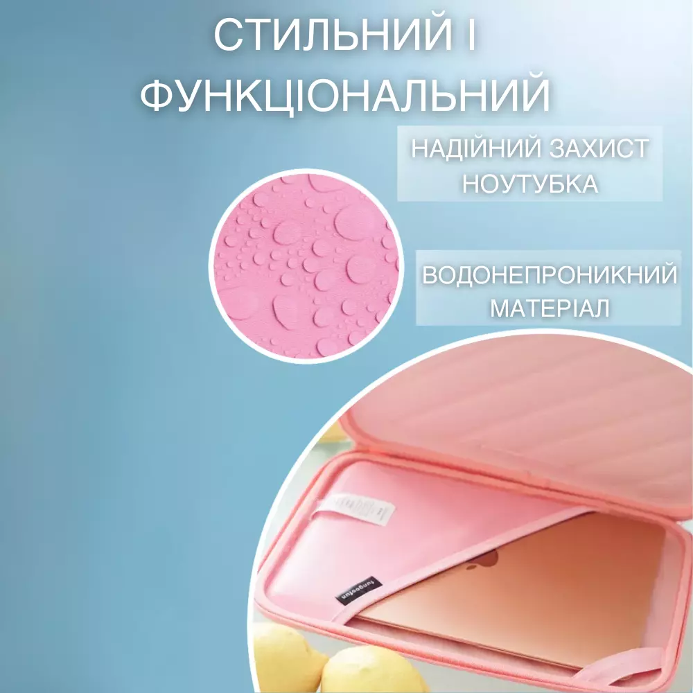 Завдяки запатентованій технології захисту від ударів, чохол ефективно оберігає ноутбук або планшет від механічних пошкоджень. Надійна застібка-блискавка забезпечує щільне закриття, запобігаючи потраплянню вологи та пилу. Ніжний рожевий колір надає аксесуару стильного та сучасного вигляду, а компактні розміри дозволяють зручно носити його в рюкзаку або сумці.