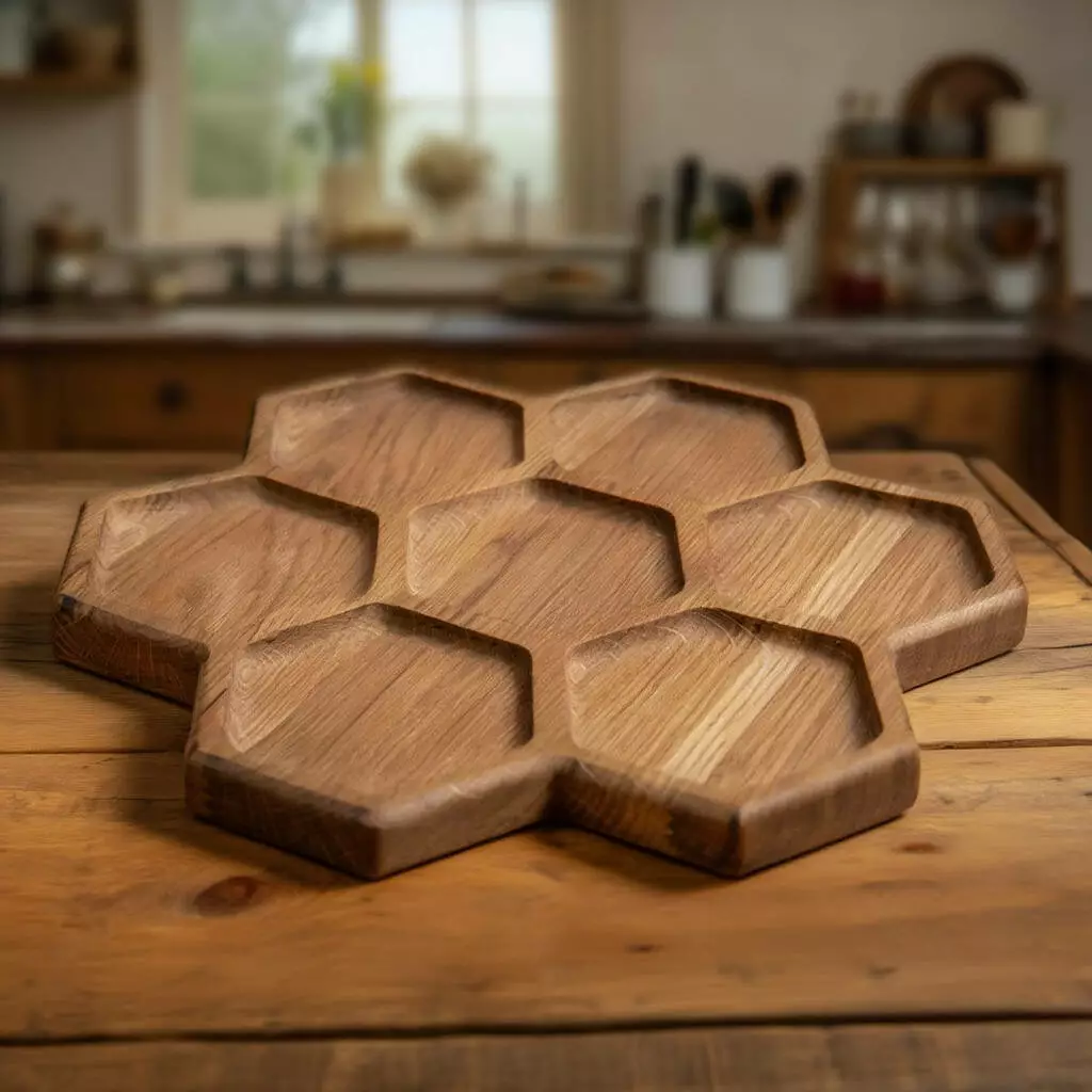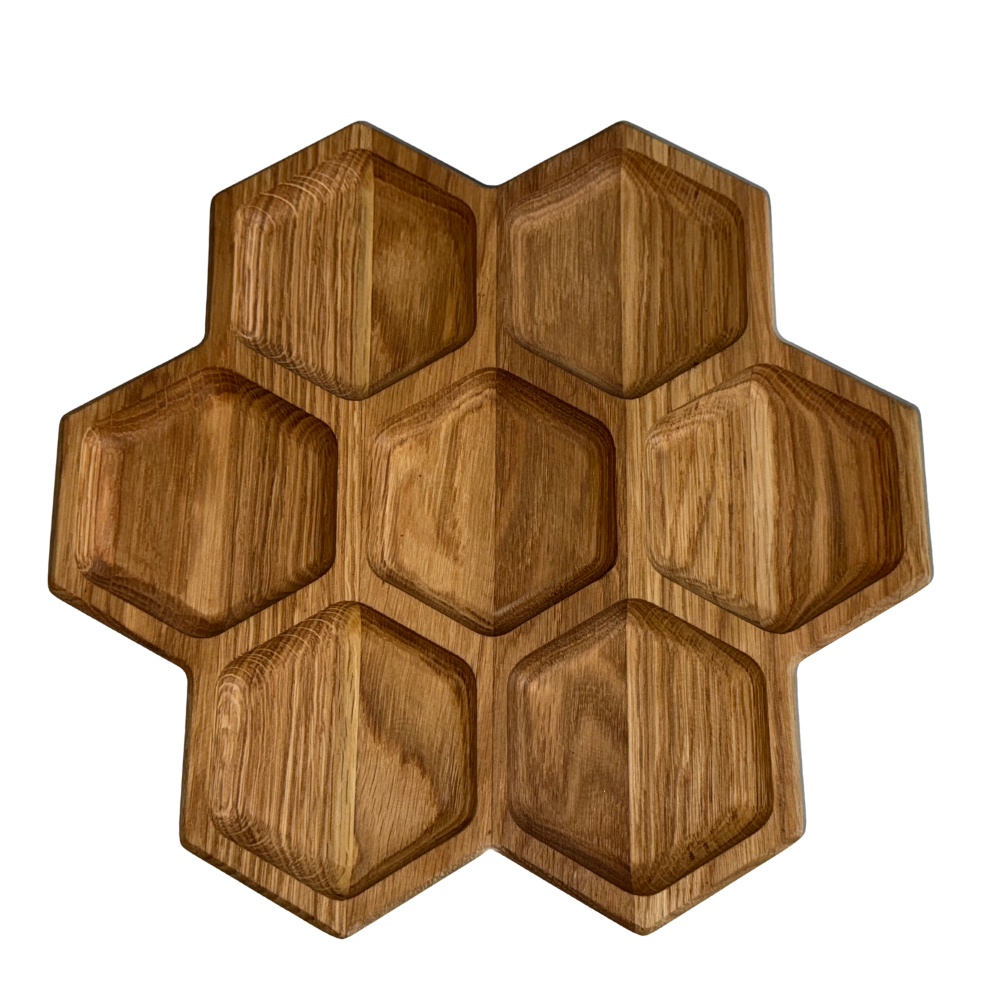 Менажниця з натурального дерева виконана в оригінальній формі сот і