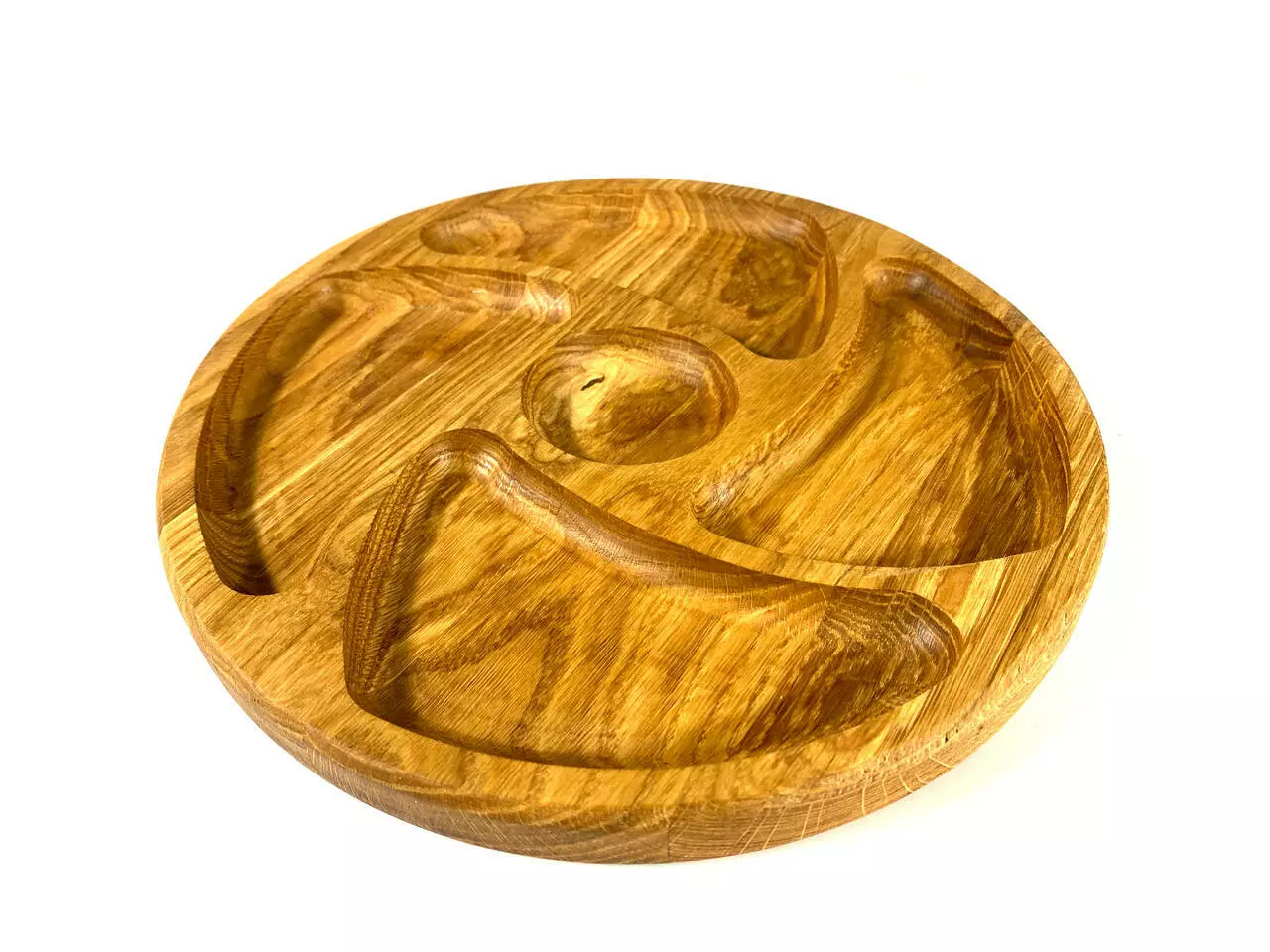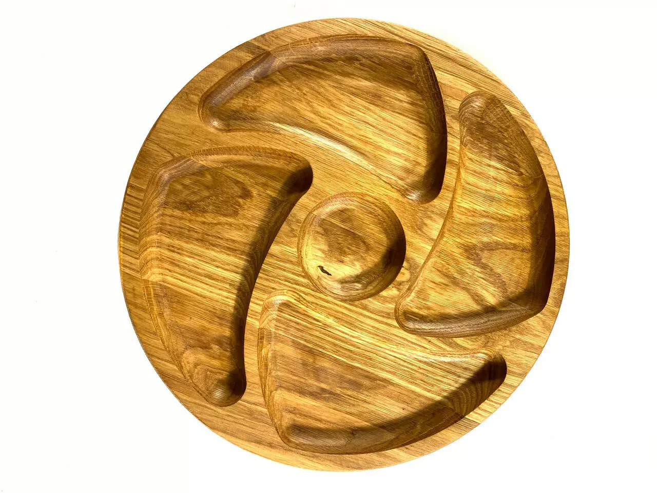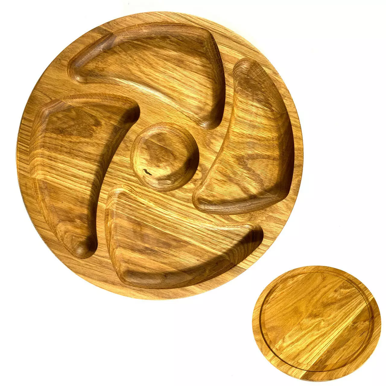 Кожна тарілка виготовлена з цільного дерева товщиною 2 см та вирізана з різноманітними ємностями, ідеальними для подачі різноманітних закусок. Від смачних фруктів до апетитних горішків, вони будуть виглядати дуже привабливо на наших тарілках.