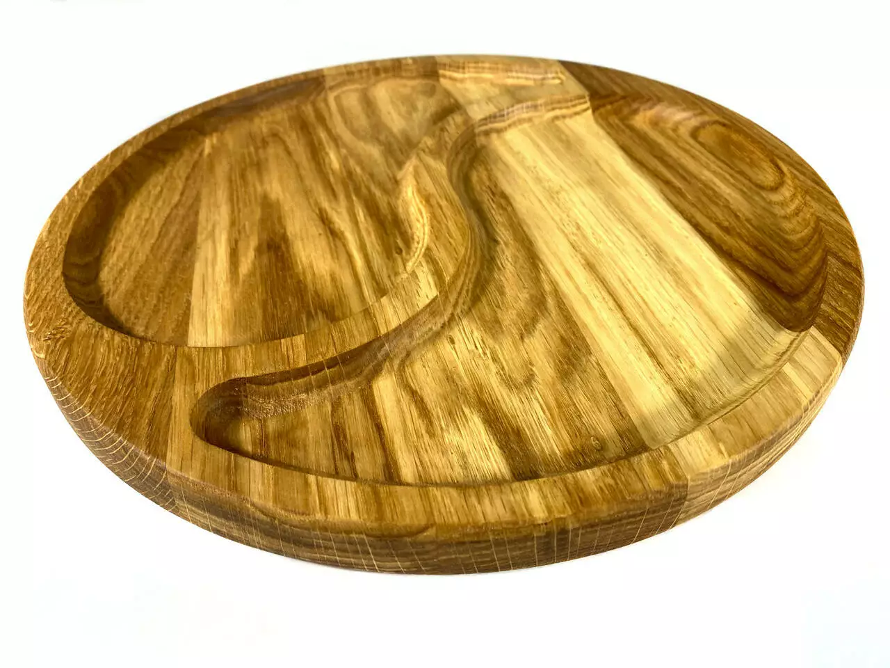 Кожна тарілка виготовлена з цільного дерева товщиною 2 см та вирізана з різноманітними ємностями, ідеальними для подачі різноманітних закусок. Від смачних фруктів до апетитних горішків, вони будуть виглядати дуже привабливо на наших тарілках.