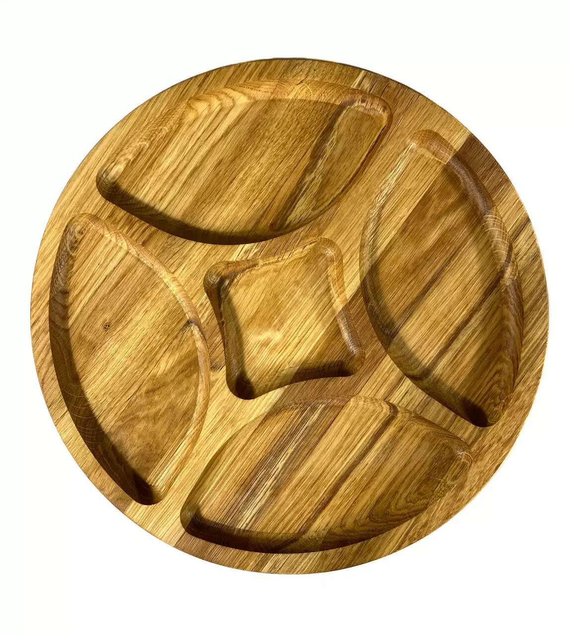 Кожна тарілка виготовлена з цільного дерева товщиною 2 см та вирізана з різноманітними ємностями, ідеальними для подачі різноманітних закусок. Від смачних фруктів до апетитних горішків, вони будуть виглядати дуже привабливо на наших тарілках.