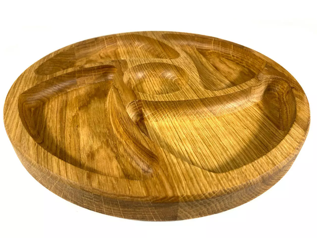 Кожна тарілка виготовлена з цільного дерева товщиною 2 см та вирізана з різноманітними ємностями, ідеальними для подачі різноманітних закусок. Від смачних фруктів до апетитних горішків, вони будуть виглядати дуже привабливо на наших тарілках.