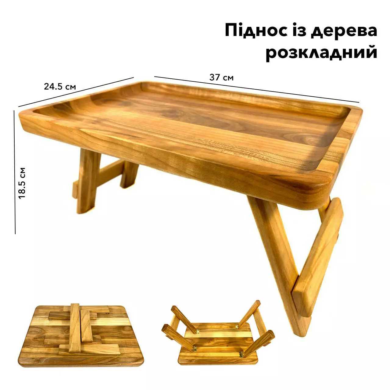 Складані ніжки на металевих петлях дозволяють зручно зберігати піднос, коли він не використовується. Його можна легко скласти та поставити в шафу або на полицю, заощаджуючи місце. Завдяки ергономічному дизайну піднос гармонійно впишеться в будь-який інтер’єр і стане чудовим доповненням до вашого дому.