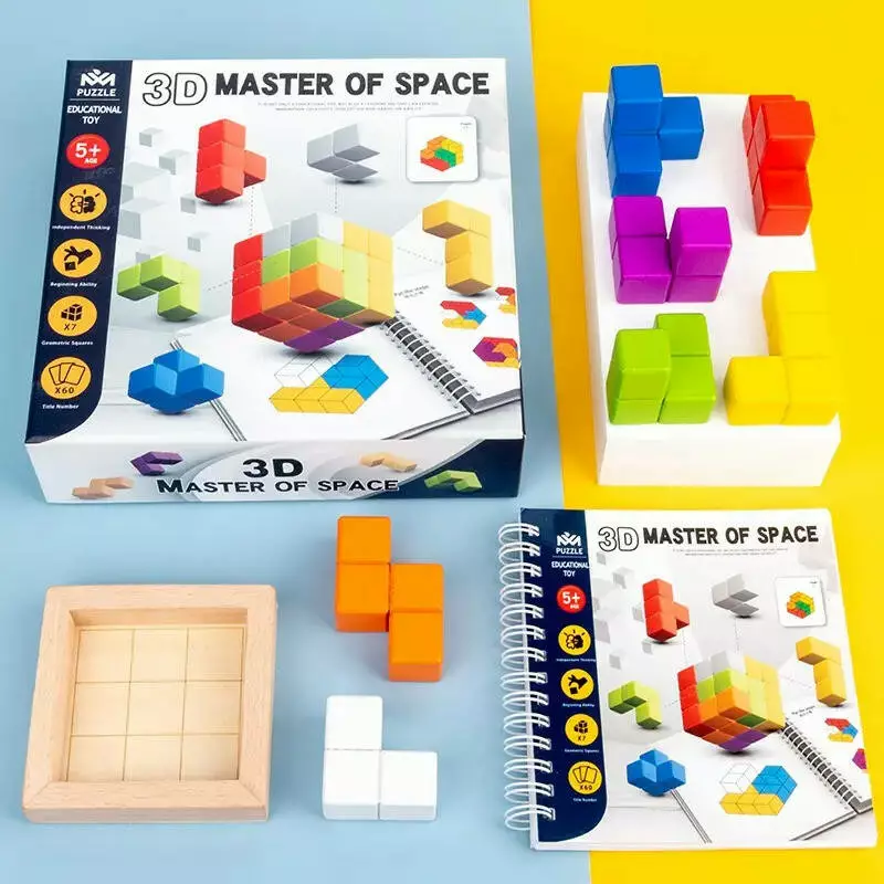 Деревʼяний конструктор Монтесорі куб на 7 елементів та 60 карточок з логічними завданнями в кольорі