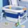 Дитяча складна ванночка для купання, ванна для дітей зі зручним сидінням і зливною пробкою, складна ванночка біло-синя
