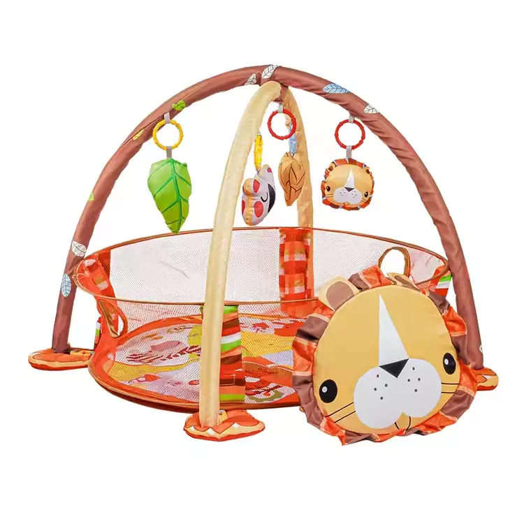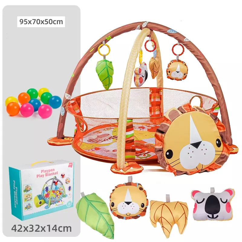 Дитячий килимок-манеж з дугами, іграшками та кульками, яскравий розвивальний килимок, модель Лев