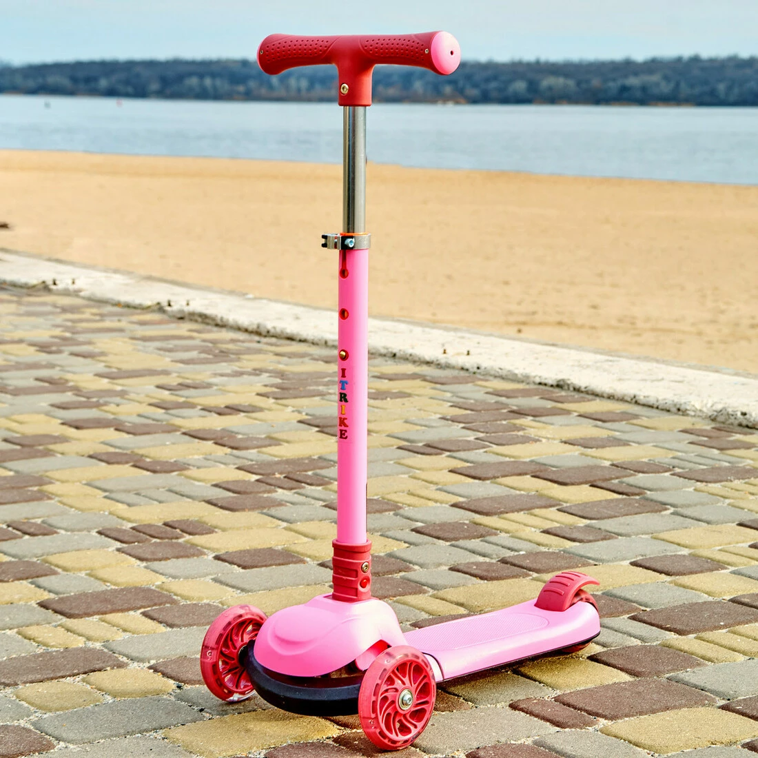 Дитячий складний триколісний самокат iTrike 2579 з підсвіткою колес Рожевий
