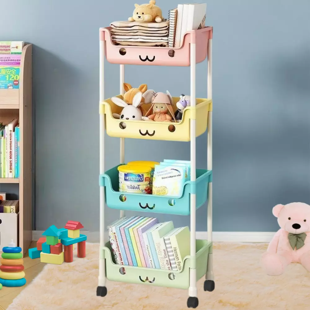 Дитячий стелаж пересувний,на чотири кошики органайзер, для іграшок в дитячу 106×31×21см, Різнокольоровий