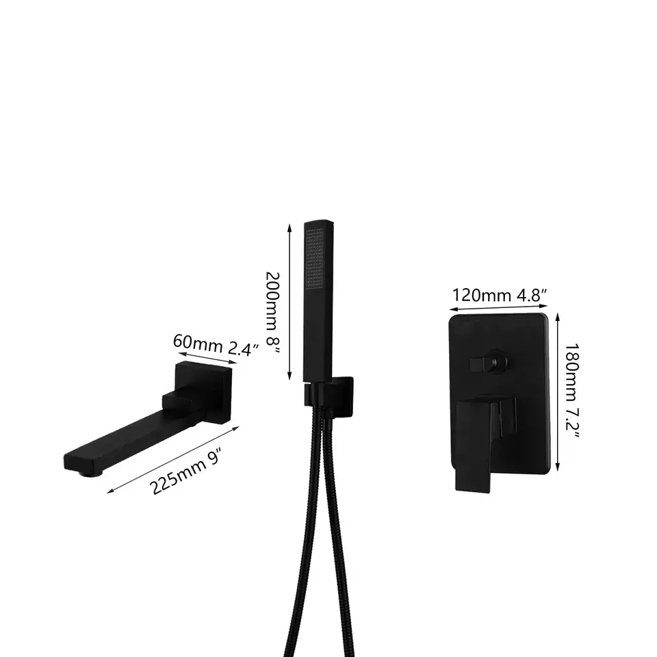 Дизайнерський змішувач у ванну 2 в 1: вилив і ручний душ з кріпленням Чорний матовий