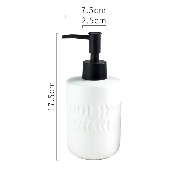 Виготовлений із кераміки, дозатор має міцну та довговічну конструкцію. Компактні розміри (17,5 см заввишки і 7,5 см у діаметрі) дають змогу легко розмістити його на раковині або стільниці, не займаючи багато місця. Зручний насос забезпечує просте і точне дозування мила, що робить його чудовим для повсякденного використання.