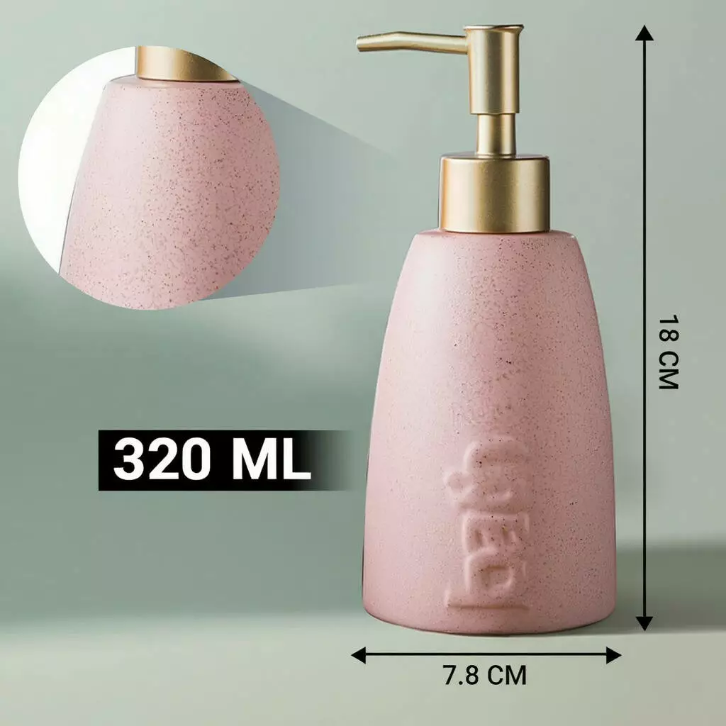 Дозатор керамічний для мила у ванну і душову кімнату 320 мл, диспенсер для рідкого мила і миючого засобу, рожевий
