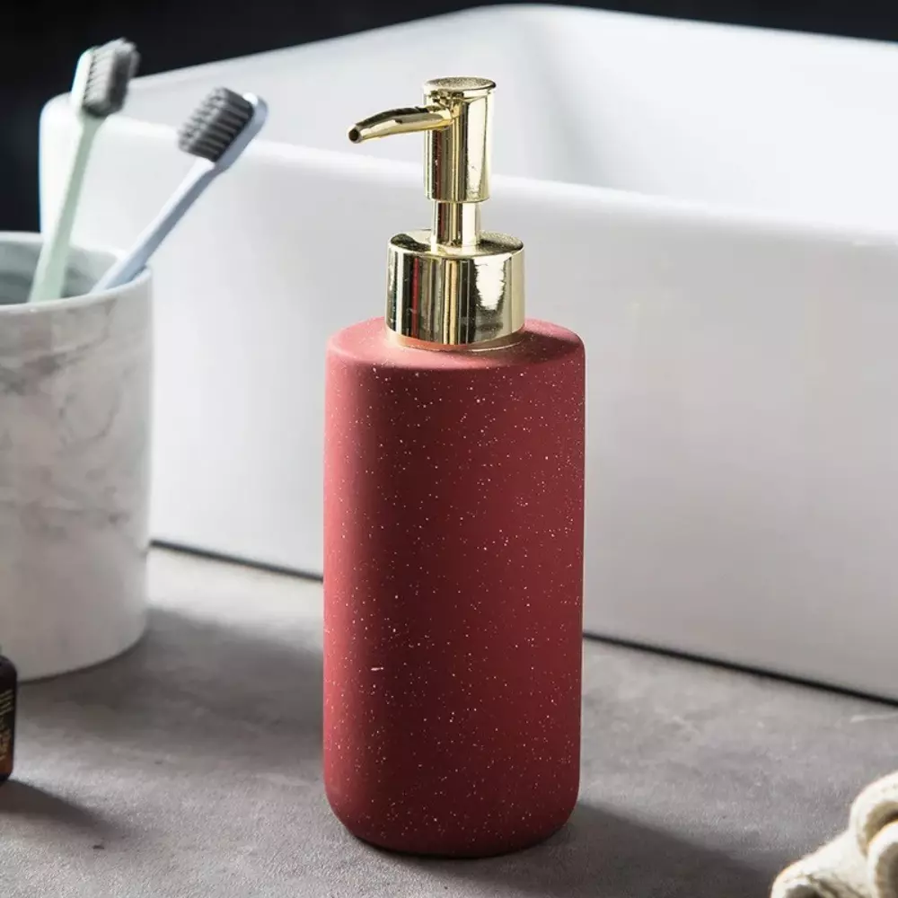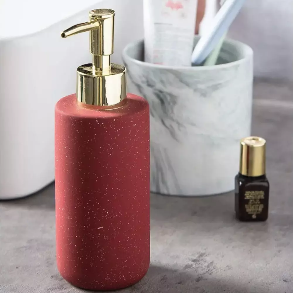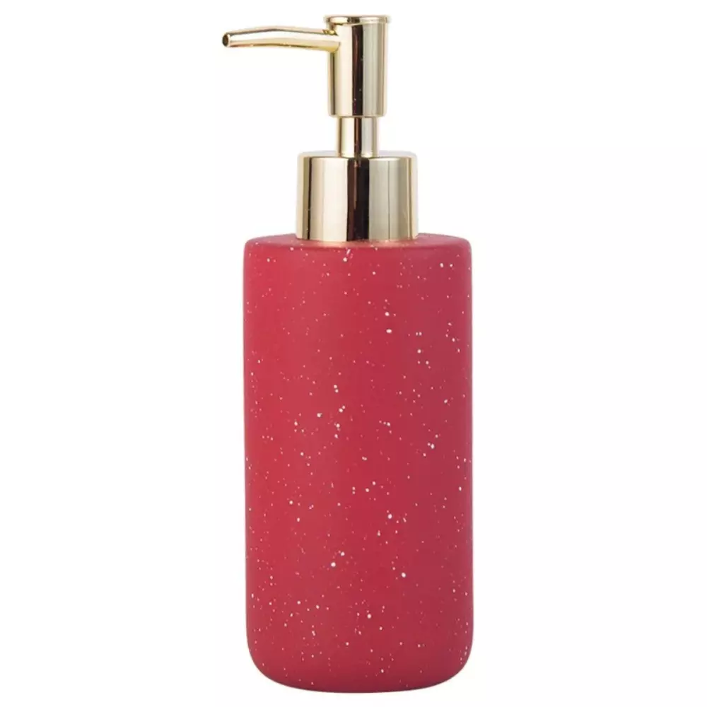 Дозатор керамічний для мила у ванну і кухню 300 мл, диспенсер для рідкого мила і миючого засобу, червоний