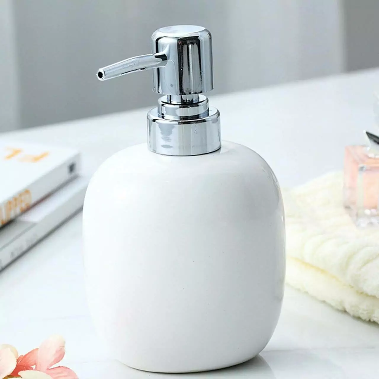Дозатор керамічний для мила у ванну і кухню 450 мл, диспенсер для рідкого мила і миючого засобу, білий