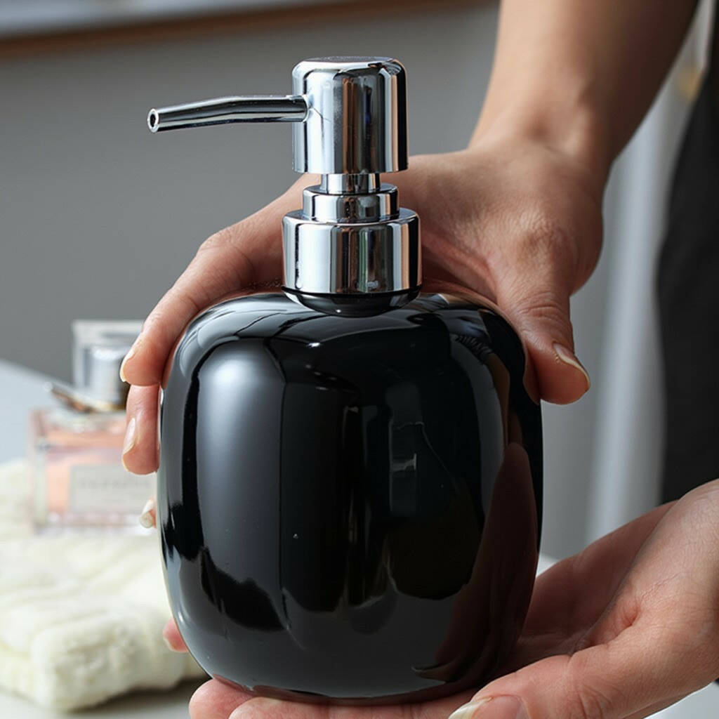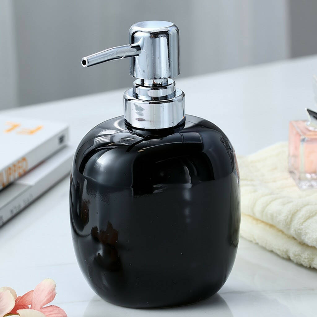 Дозатор керамічний для мила у ванну і кухню 450 мл, диспенсер для рідкого мила і миючого засобу, чорний