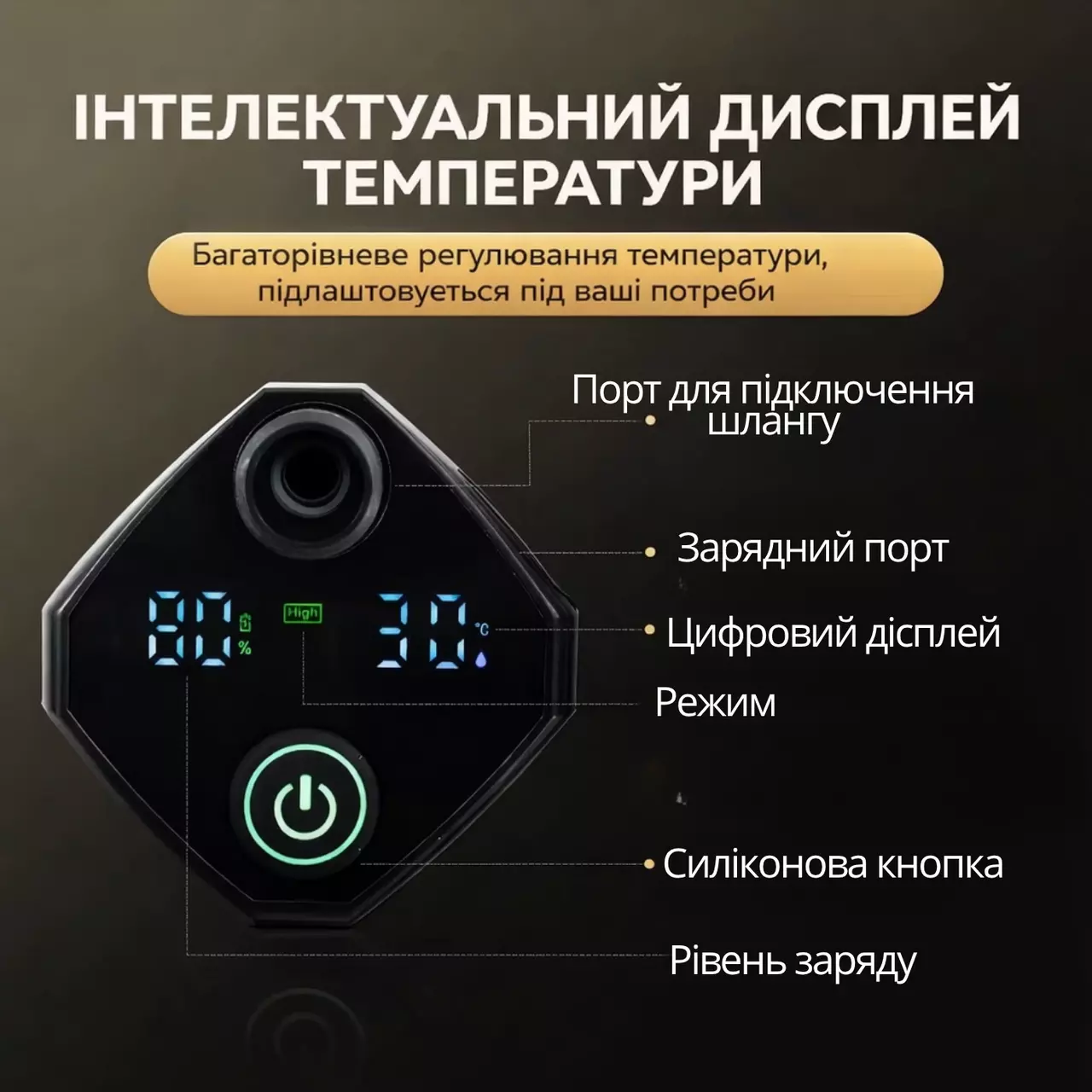 Душ переносний з насосом акумуляторним 6000 мА·год і дисплеєм польовий кемпінговий портативний для туризму, довжина 2 м, чорний