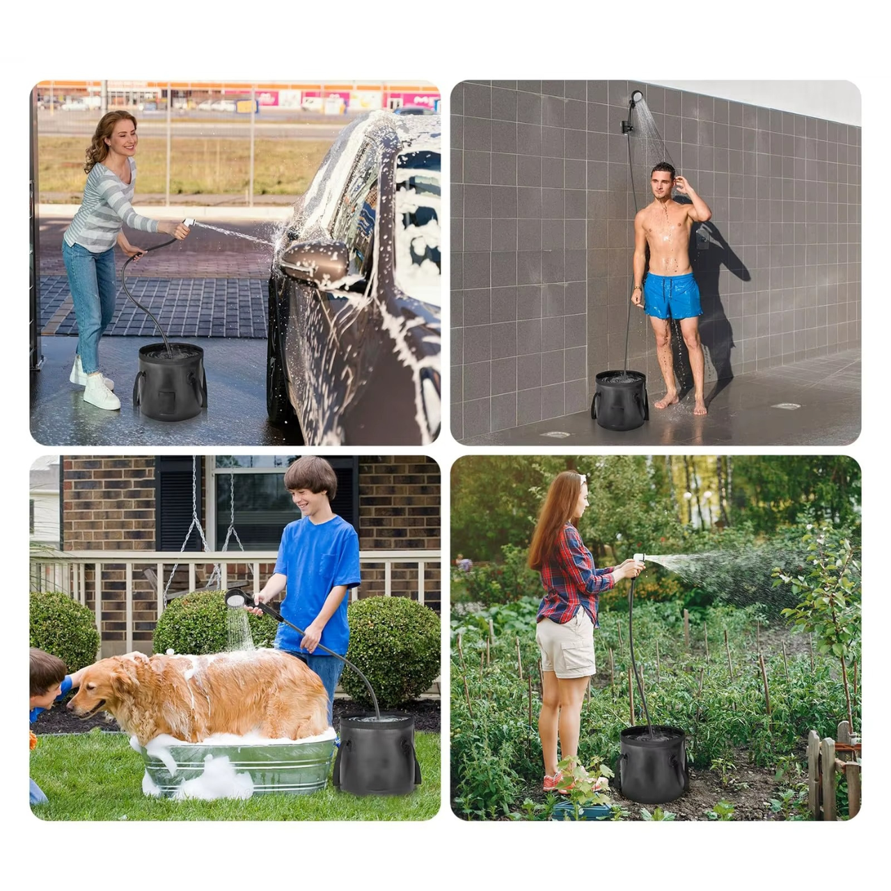 Насос забезпечує рівномірний потік води, а довгий шланг робить використання комфортним. Корпус виконаний з міцних матеріалів ABS і PVC, що гарантує надійність і довговічність. У комплекті також йде складане відро об'ємом 20 літрів зі зручними ручками, виконане з міцного ПВХ, що робить використання душу ще більш зручним у будь-яких умовах. Чудово підходить для душу, миття рук, посуду, овочів або домашніх тварин.