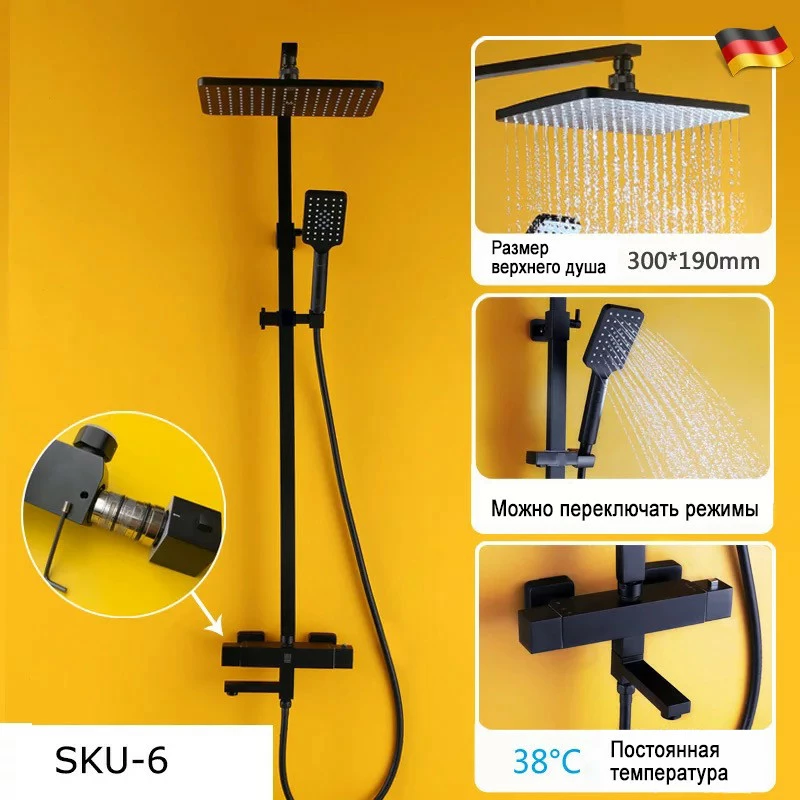 Найсучасніший дизайн і еталон якісної сантехніки це WanFan. Даний товар це душова гарнітура WanFan luxury 3в1 складається з ручної лійки діаметром з тримачем, верхнього квадратного, одноструминного верхнього душу зі сторонами з кронштейном душової штанги і термостатичного змішувача для душу та душового шланга.