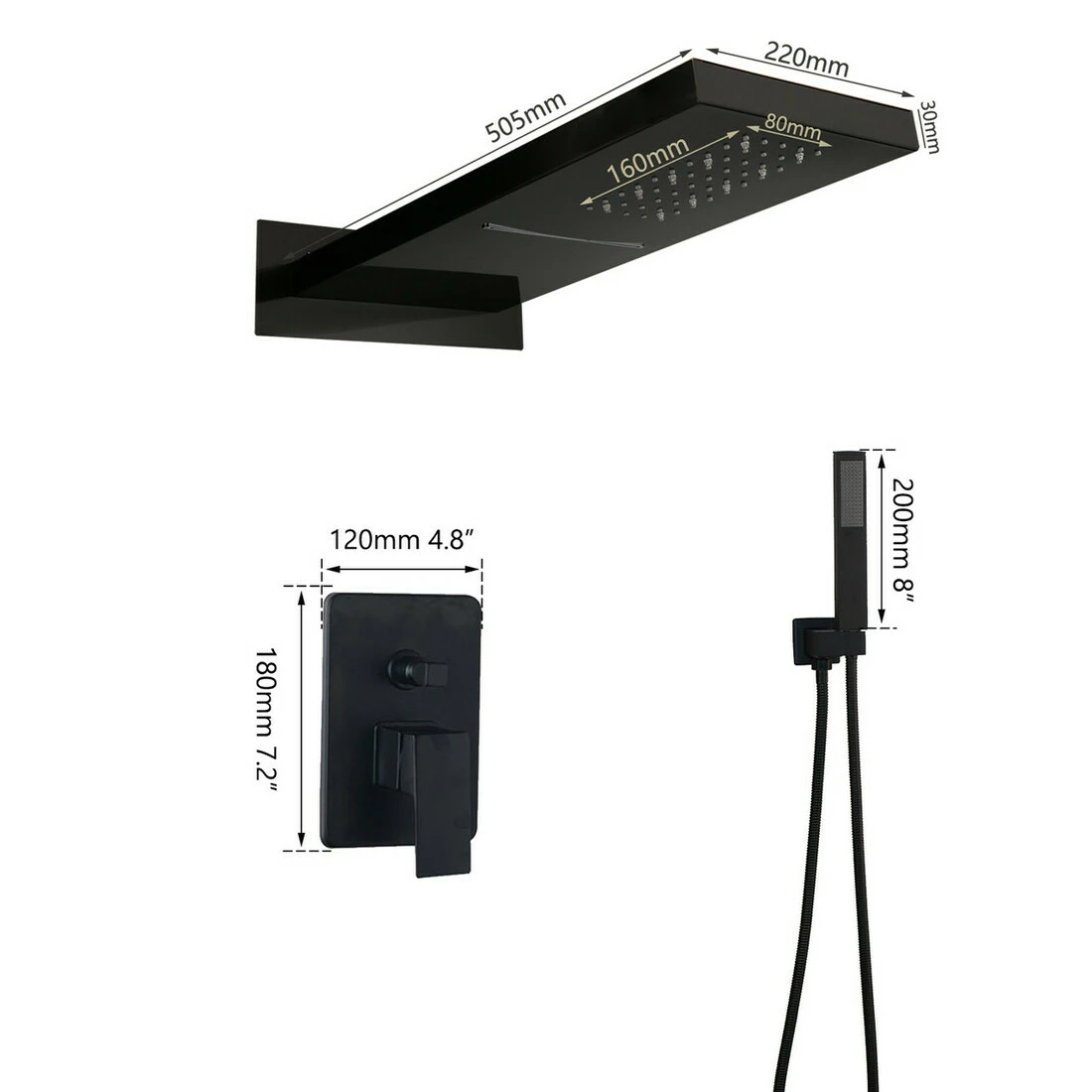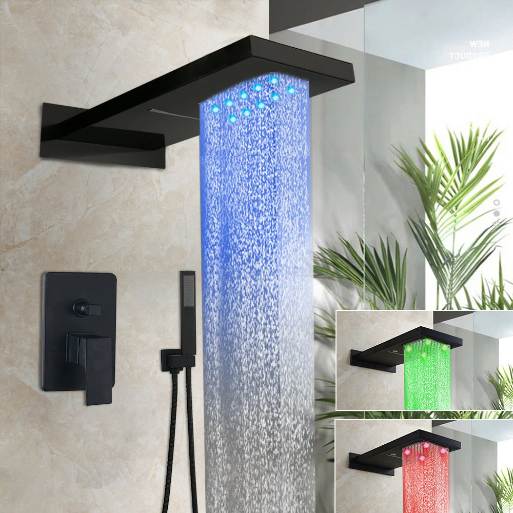 Душовий гарнітур настінний з підсвічуванням 2в1 WanFan душова панель навісна Чорний