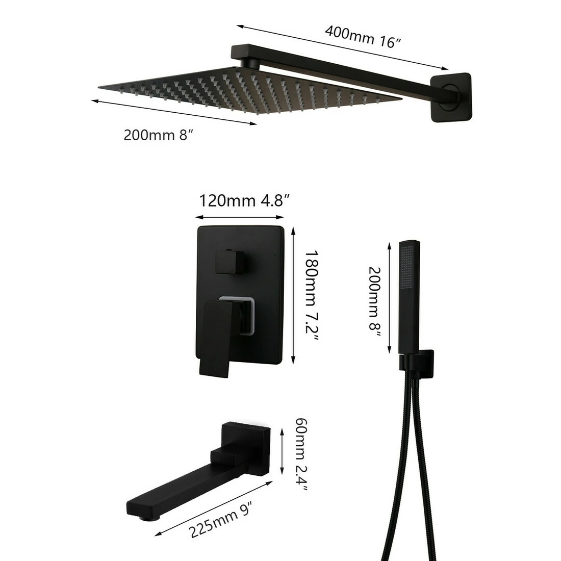 Душовий гарнітур прихованого монтажу 3в1 WanFan душова система стаціонарний душ та кран Чорний