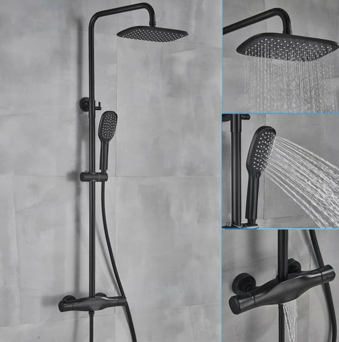 Даний товар це душова гарнітура WanFan luxury 3в1 складається ручної лійки з тримачем, верхнього квадратного душу з кронштейном душової штанги а також, термостатичного змішувача для душу.