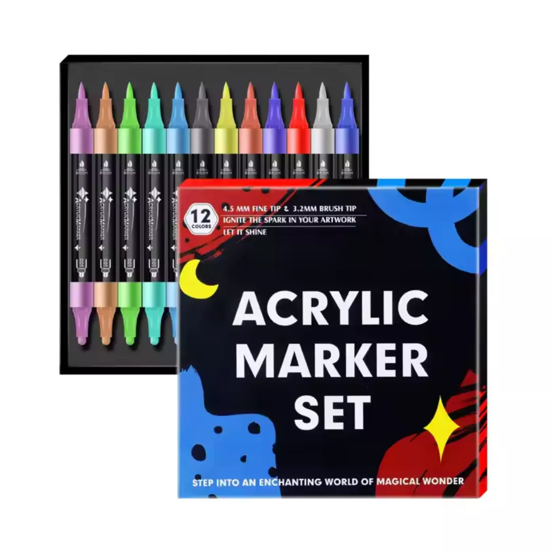 Двосторонні акрилові маркери, 12 кольорів, для малювання на склі, дереві, тканині, якісні маркери