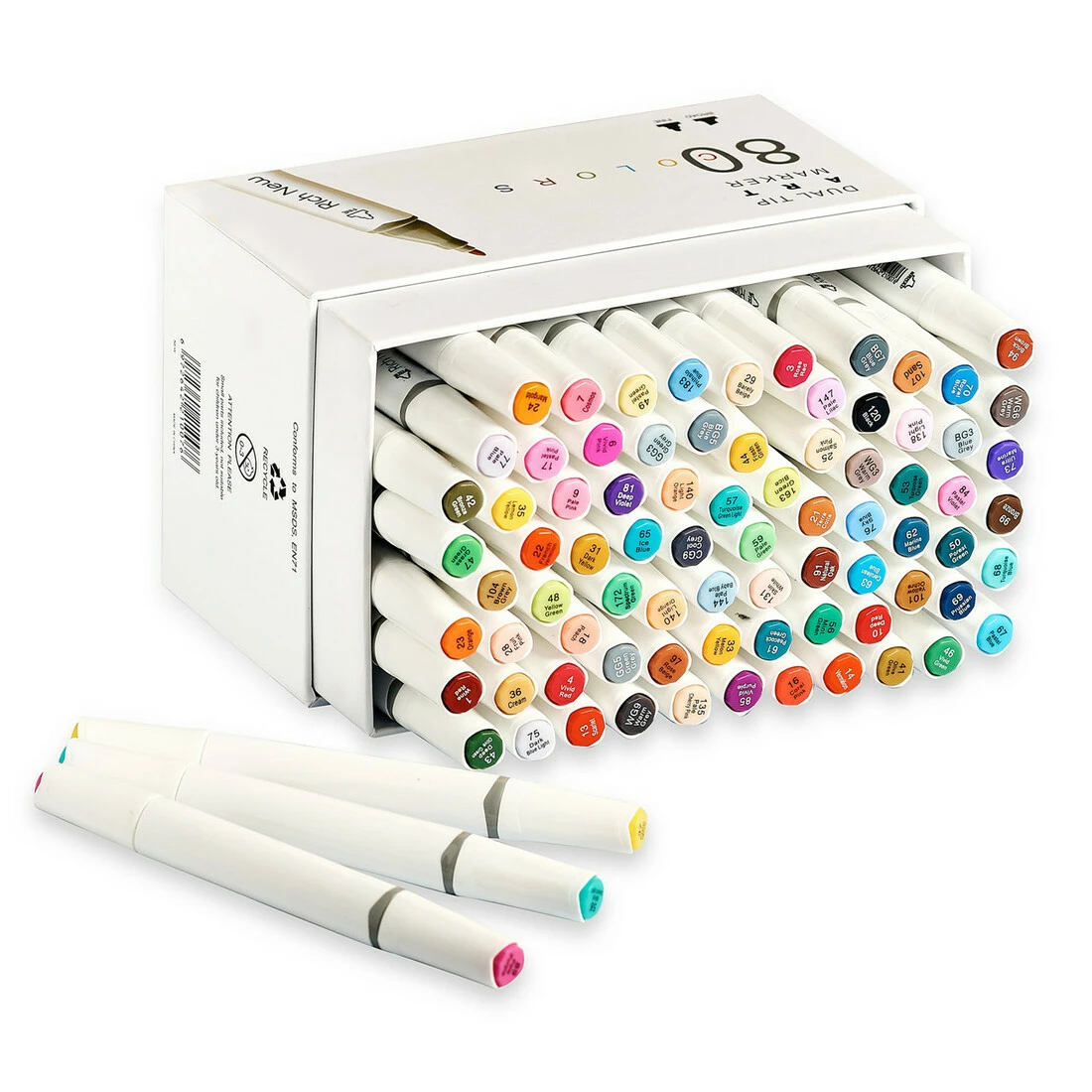 Двосторонні маркери для скетчинга і малювання на спиртовій основі 80 штук Rich New, Фломастери для художників