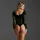 Боді виготовлене з еластичної сітчастої тканини з мереживним орнаментом, який гармонійно поєднує напівпрозорі та більш щільні ділянки. Такий дизайн акцентує зону грудей, талію та стегна, створюючи виразний візуальний ефект. Верх виробу виконаний з асиметричним кроєм і довгими рукавами, що додає образу оригінальності та стилю.