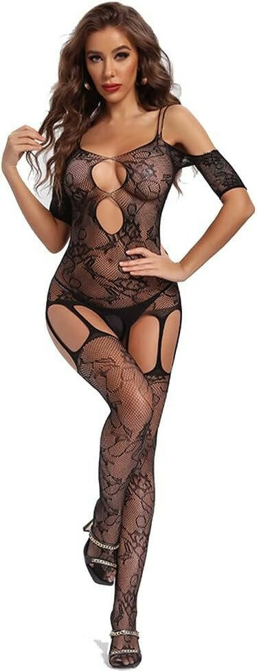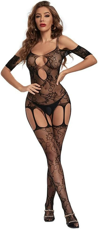 Еротичний бодістокінг мереживний з сітки, жіноча сексуальна білизна, універсальний розмір зріст: 145–185 см,One Size чорний, 8744