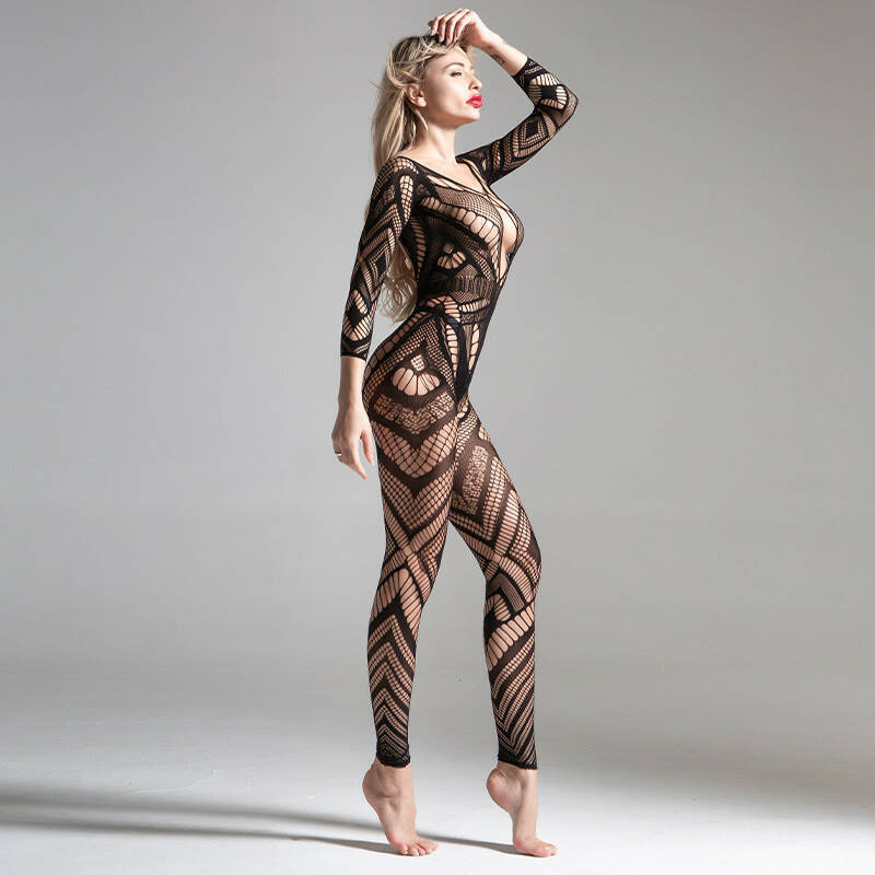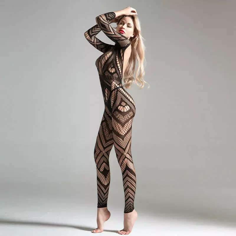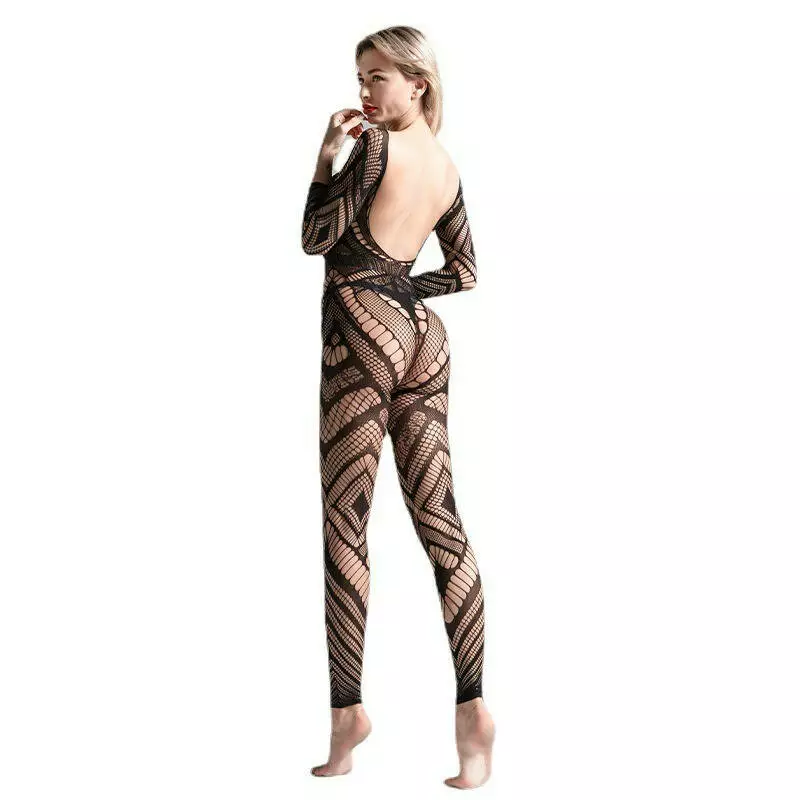 Еротичний бодістокінг жіночий мереживна сітка, сексуальна білизна, універсальний розмір зріст: 145-185 см, One Size чорний, 8562