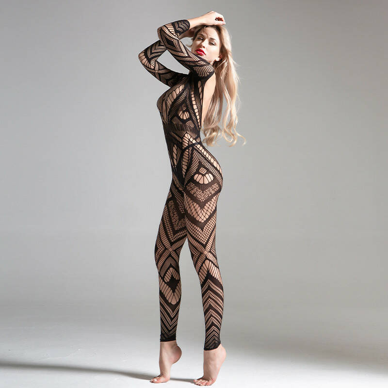 Ефектний бодістокінг виконаний з еластичної сітчастої тканини з