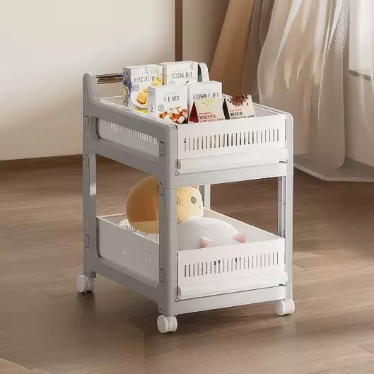 Етажерка оснащена чотирма колесами з можливістю повороту на 360 градусів, що дає змогу легко переміщати її по дому. Для надійної фіксації два колеса оснащені гальмами. Міцні кошики з якісного поліпропілену витримують значні навантаження, забезпечуючи достатнє місце для зберігання.
