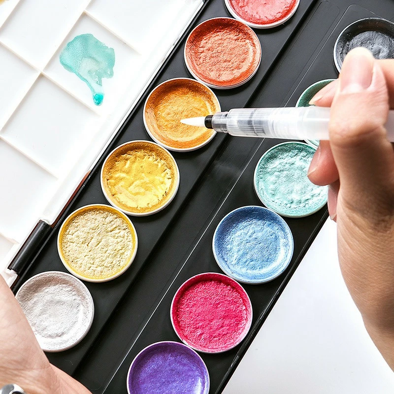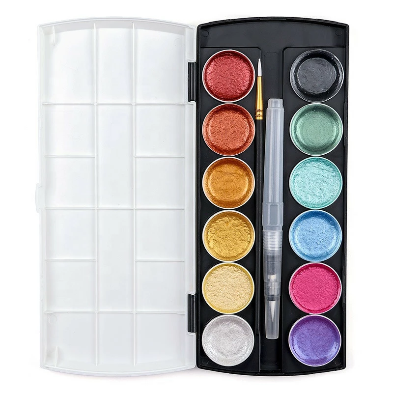 Фарби акварельні з перламутром (металік) для малювання 12 кольорів, перламутрові фарби, що переливаються
