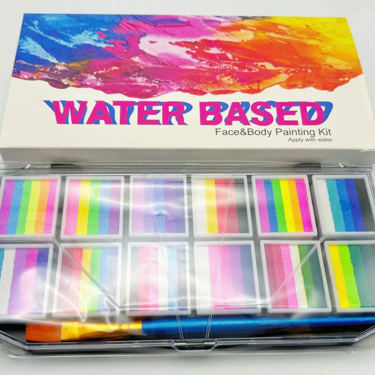 Фарби для бодіарту на водній основі 12 комбінацій кольорів, водорозчинний пігмент, з пензликом 23х12х2 см
