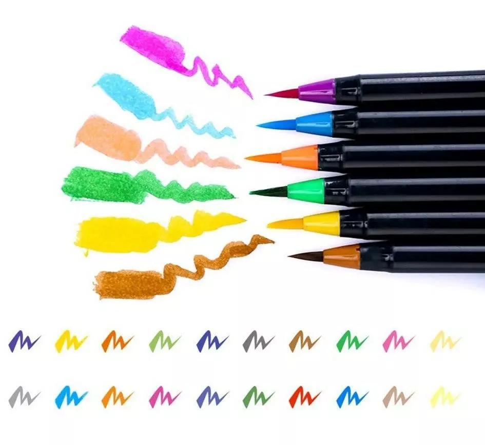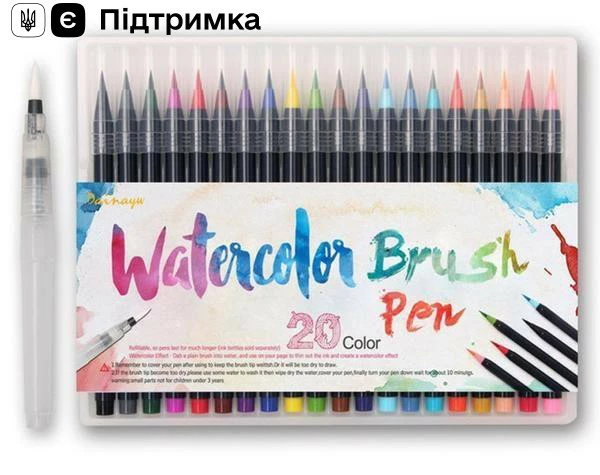 Фломастери на водній основі 20 кольорів, художні акварельні маркери для скетчинга, Маркер кисть
