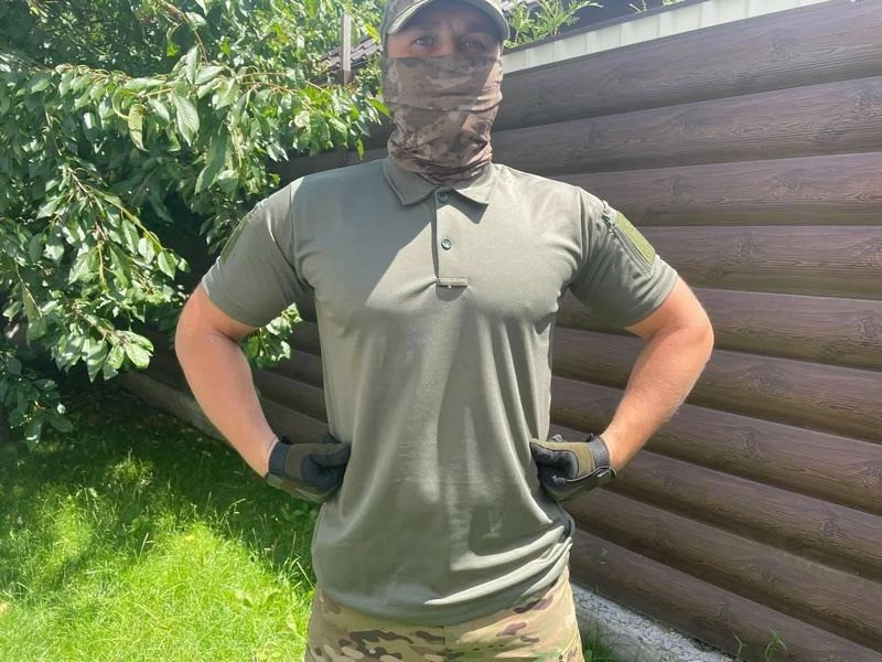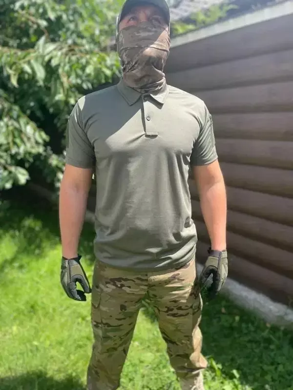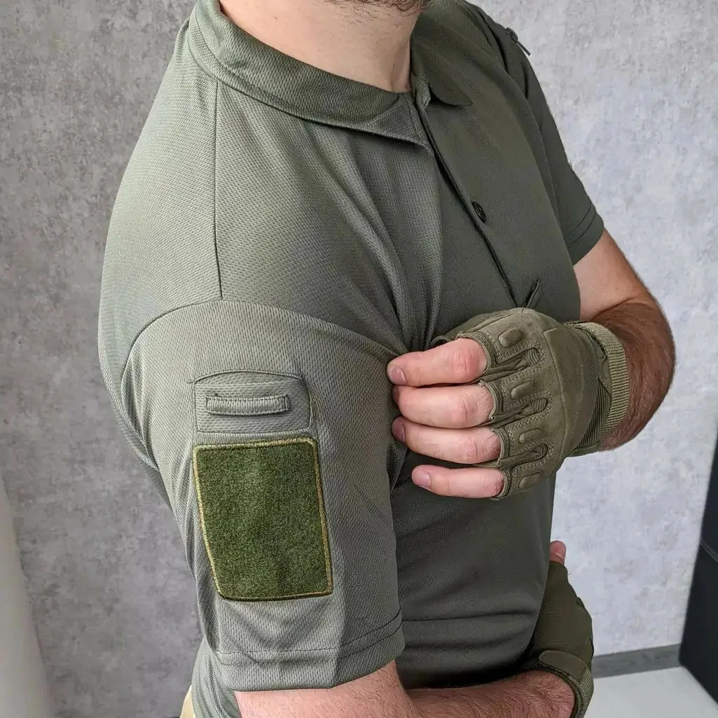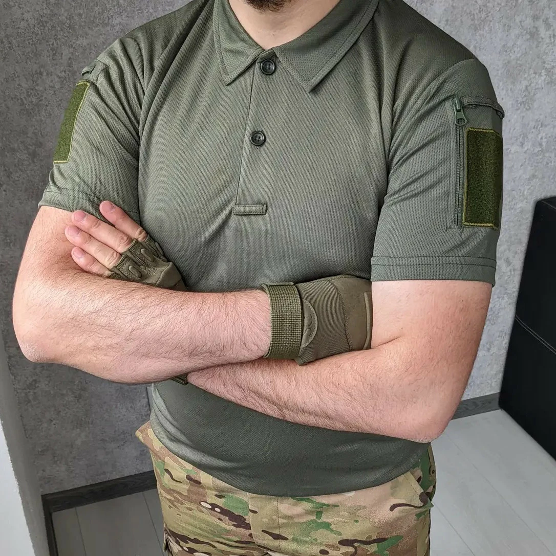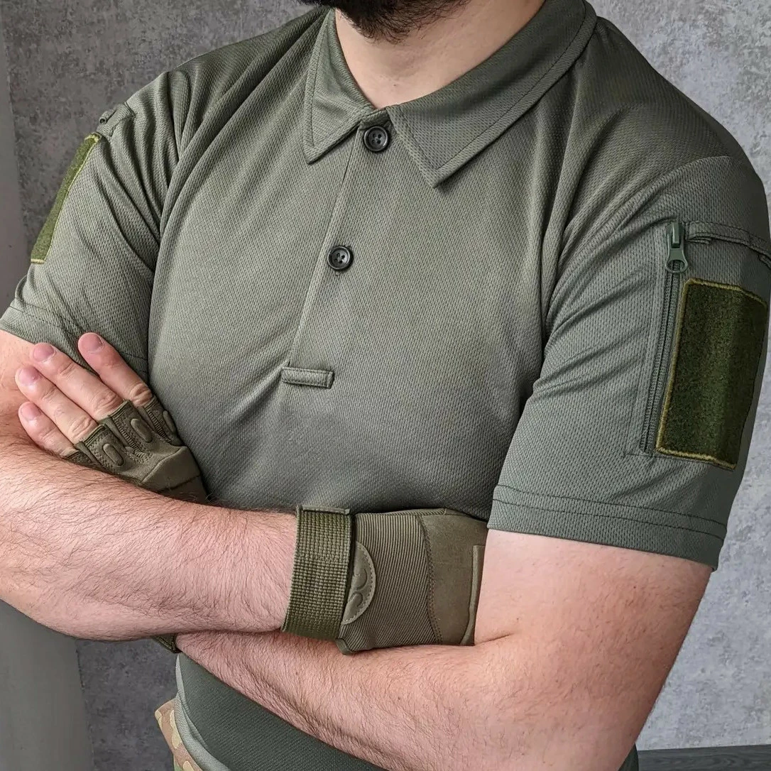 Футболка чоловіча поло з коротким рукавом тактична, Поло з коротким рукавом для військових Хакі S
