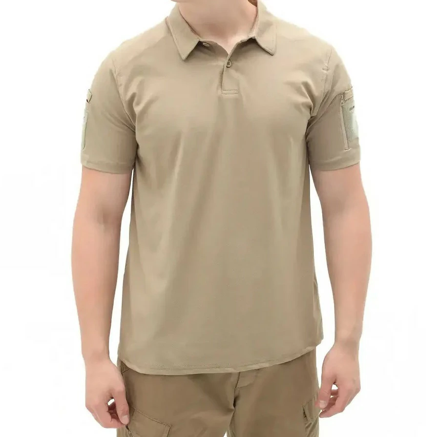 Футболка чоловіча поло з коротким рукавом тактична, Поло з липучками на рукавах для військових Бежевий S