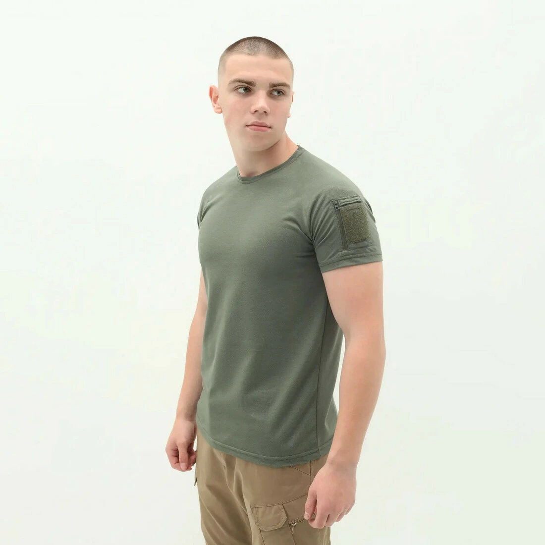 Футболка чоловіча з коротким рукавом тактична, з липучками на рукавах для військових Оливковий S